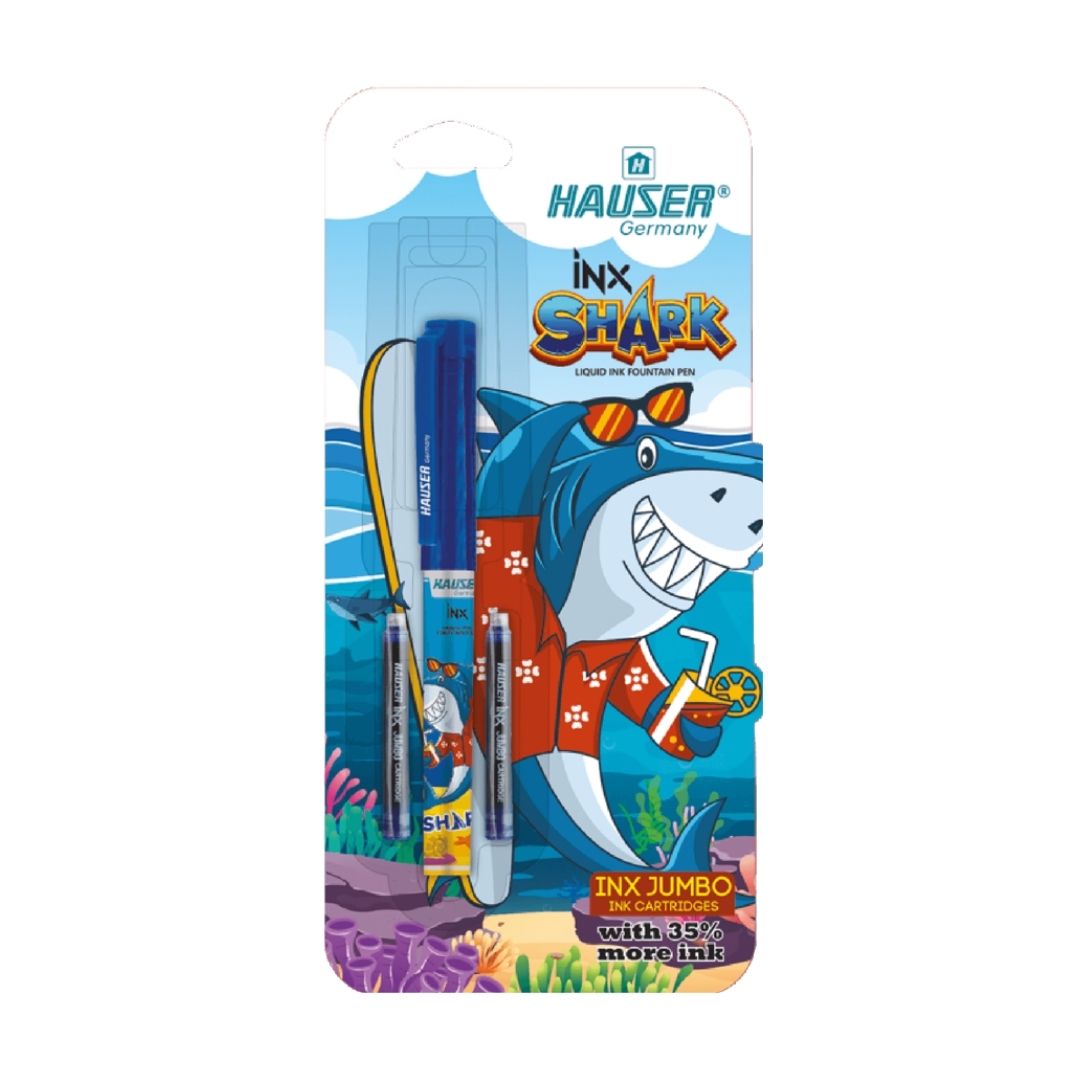 Experience bold and smooth writing with the Hauser INX Shark Liquid Ink Fountain Pen. This pen comes in a Blister Pack, includes Free 2 Pieces X-Large Jumbo Cartridges, and features Blue Ink in a Plastic Material body (design & body color may vary as per availability, body blue).