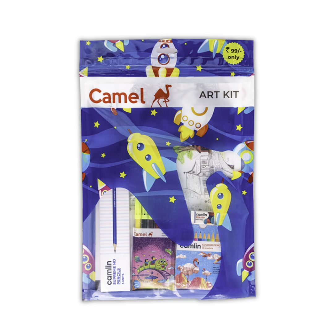 The Camel Art Kit provides a versatile selection of drawing and coloring materials for creative expression.