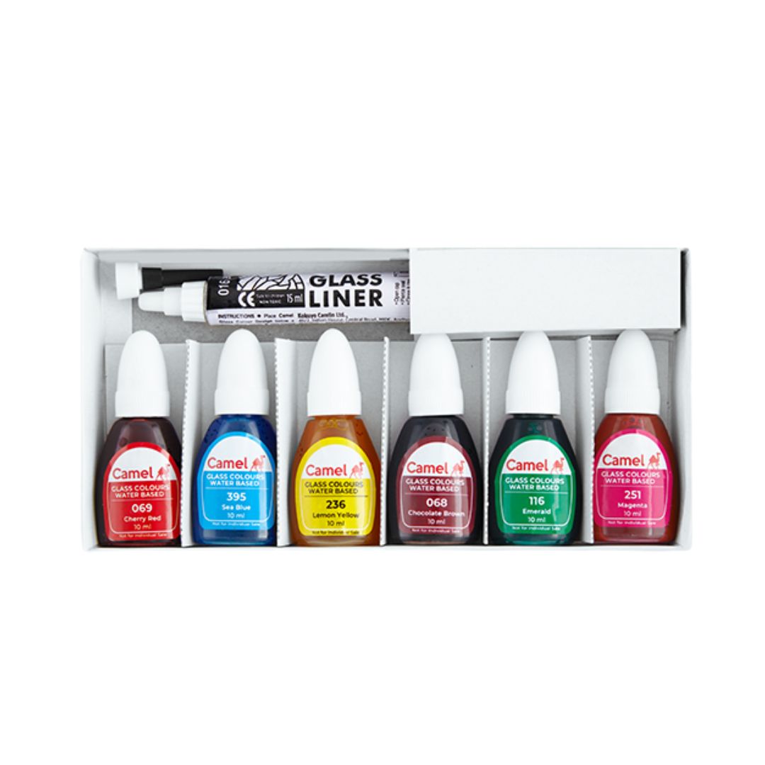 The Camel Glass Water Based Colours – 6 Shades are a health-conscious alternative to traditional solvent-based glass paints. Designed for safe and worry-free usage, these colours are ideal for children, schools, hobbyists, and sensitive users. The slow-drying formula gives ample working time, and the vivid hues create stunning, translucent effects on glass and similar surfaces.