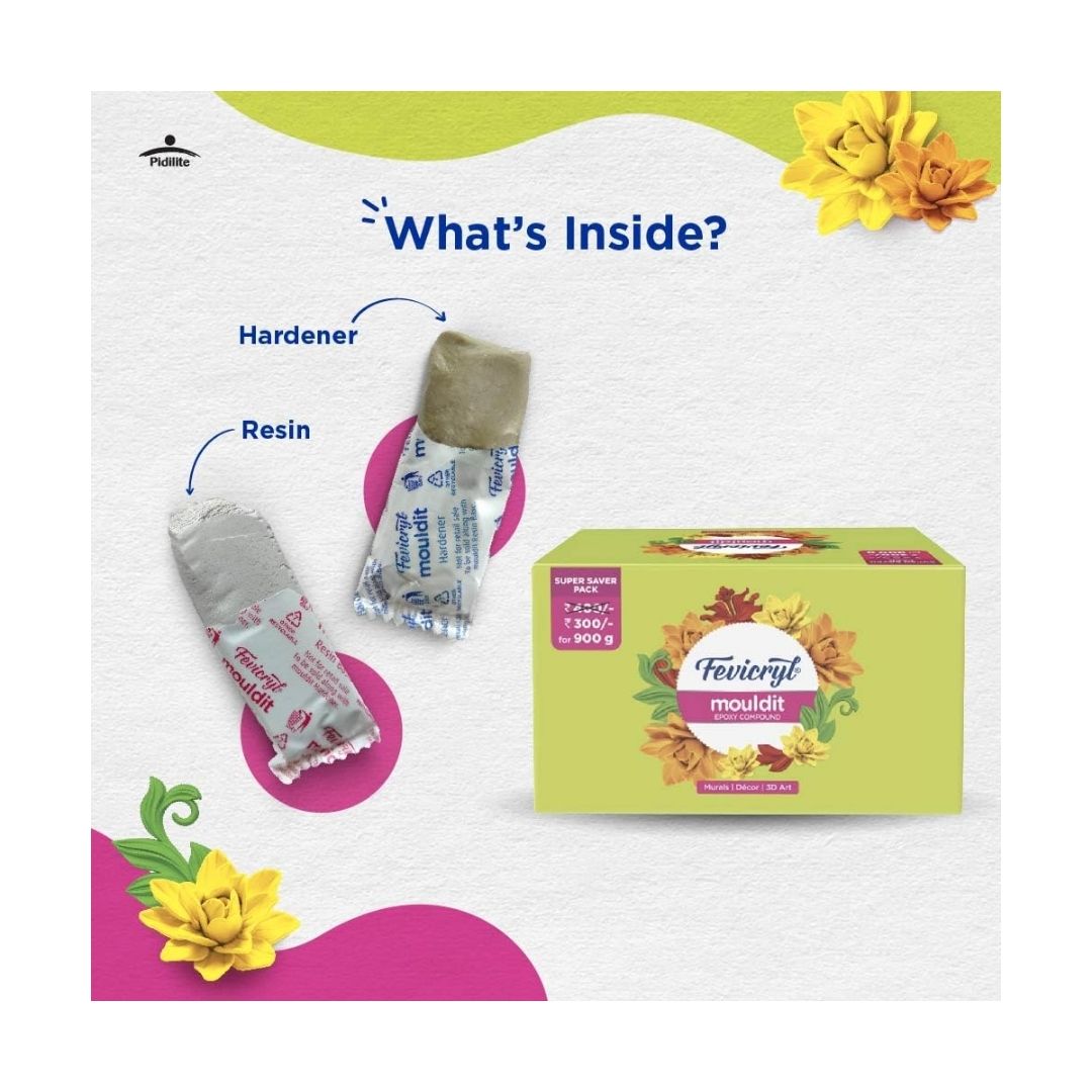Fevicryl Mouldit 90g pack featuring the resin and hardener components.