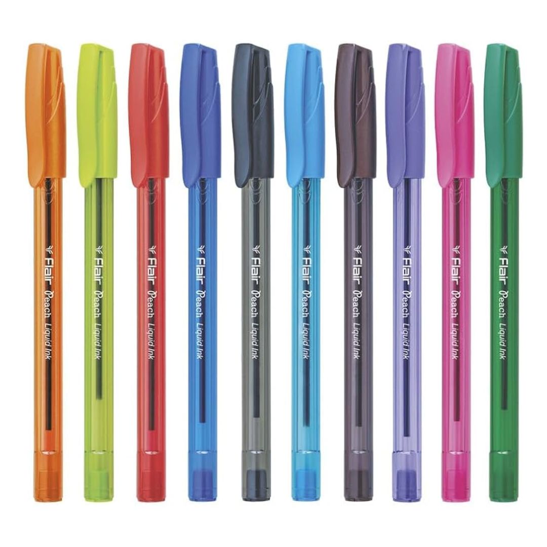 Add elegance and colour to your writing with the Flair Peach Colour Ball Pens – 10 Shades set. Crafted to deliver a luxurious writing experience, these pens glide smoothly across paper, leaving clean and consistent lines. The soft ink formulation ensures minimal smudging, making them ideal for school, college, office work, or personal journaling. With an attractive design and comfortable grip, the Flair Peach pens combine function with fashion, letting your creativity shine through every word.