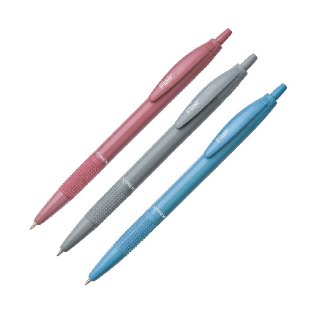 The Flair X-Trek Ball Pen features a click design that makes writing quick and easy. -