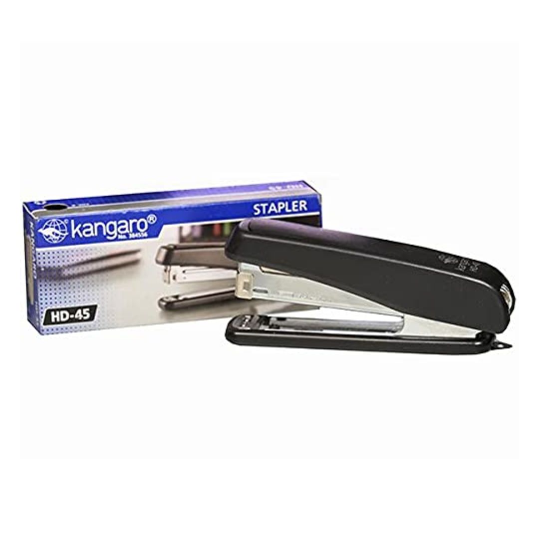 The Kangaro HD-45 Stapler is a high-performance stapler made for heavy-duty usage in offices, schools, and professional workspaces. Featuring a strong plastic body reinforced with steel, this stapler ensures durability and longevity. It also has an easy-to-open mechanism that allows for tacking onto soft surfaces like bulletin boards and notice boards. Its ergonomic design makes it comfortable to hold and operate.