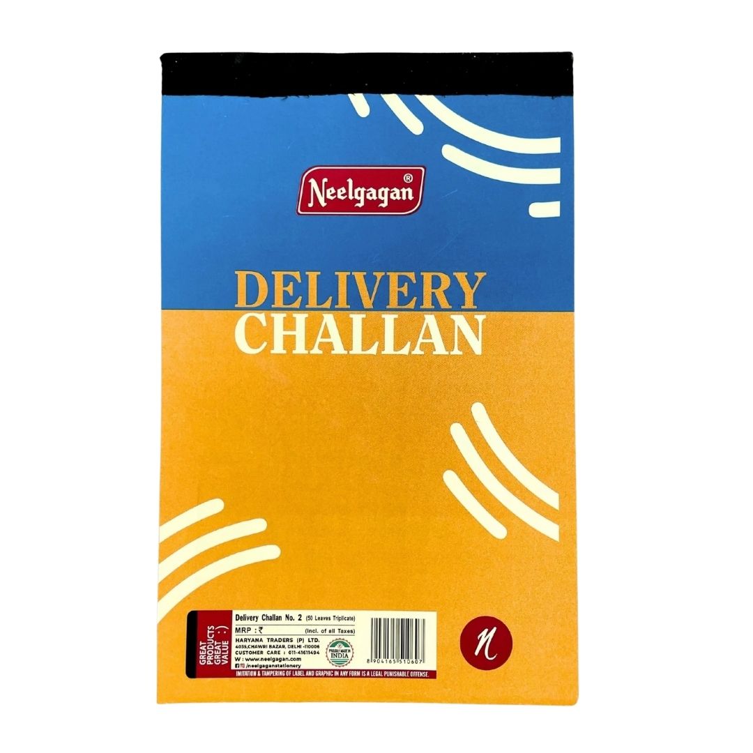 Introducing the Neelgagan Big Challan Book, the perfect tool for keeping track of your larger shipments and deliveries with professional ease. With a substantial total of 150 leaves, this generously sized delivery challan book measures 14cm x 22cm, providing ample space for detailed entries. It features 100 leaves in two colors for clear distinction of copies, along with 50 plain leaves, all in a convenient triplicate format with carbon paper included. This ensures you get instant, accurate duplicates for all your record-keeping needs. These Neelgagan challan books are ideal for businesses of all sizes, from bustling small shops to large corporations managing extensive logistics. They make it easy to track your deliveries, ensuring your records are accurate and up-to-date for smooth operations. Get your Neelgagan Big Challan Book today and start organizing your shipments like a pro!