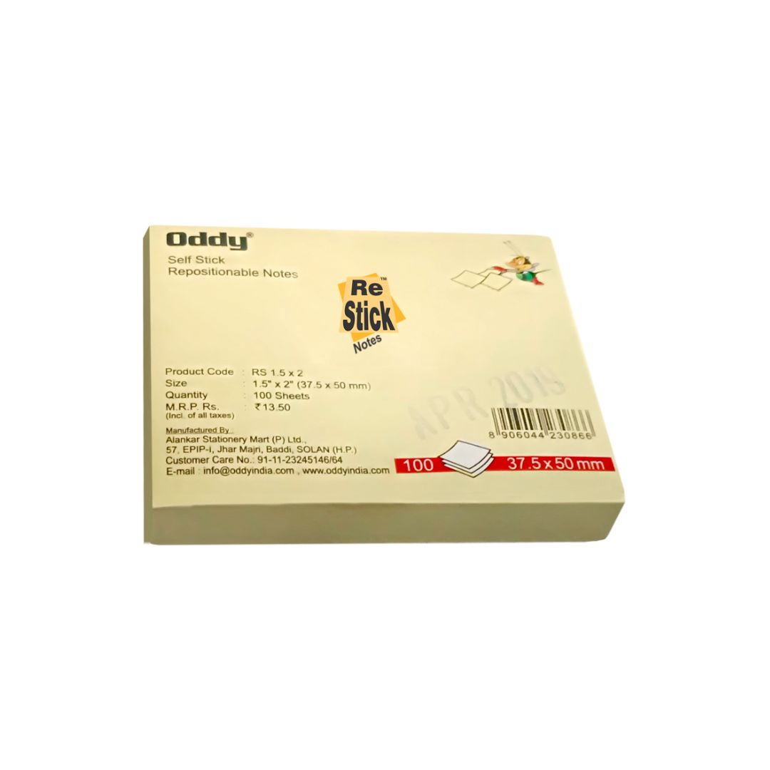 Bright and practical, Oddy Re-Stick Sticky Notes in 2” x 3” size come in a striking yellow color that ensures visibility. Featuring strong adhesive that allows for multiple re-sticks on clean surfaces, these notes are ideal for jotting down messages, reminders, or labels. Each pad includes 100 recyclable, unlined sheets.