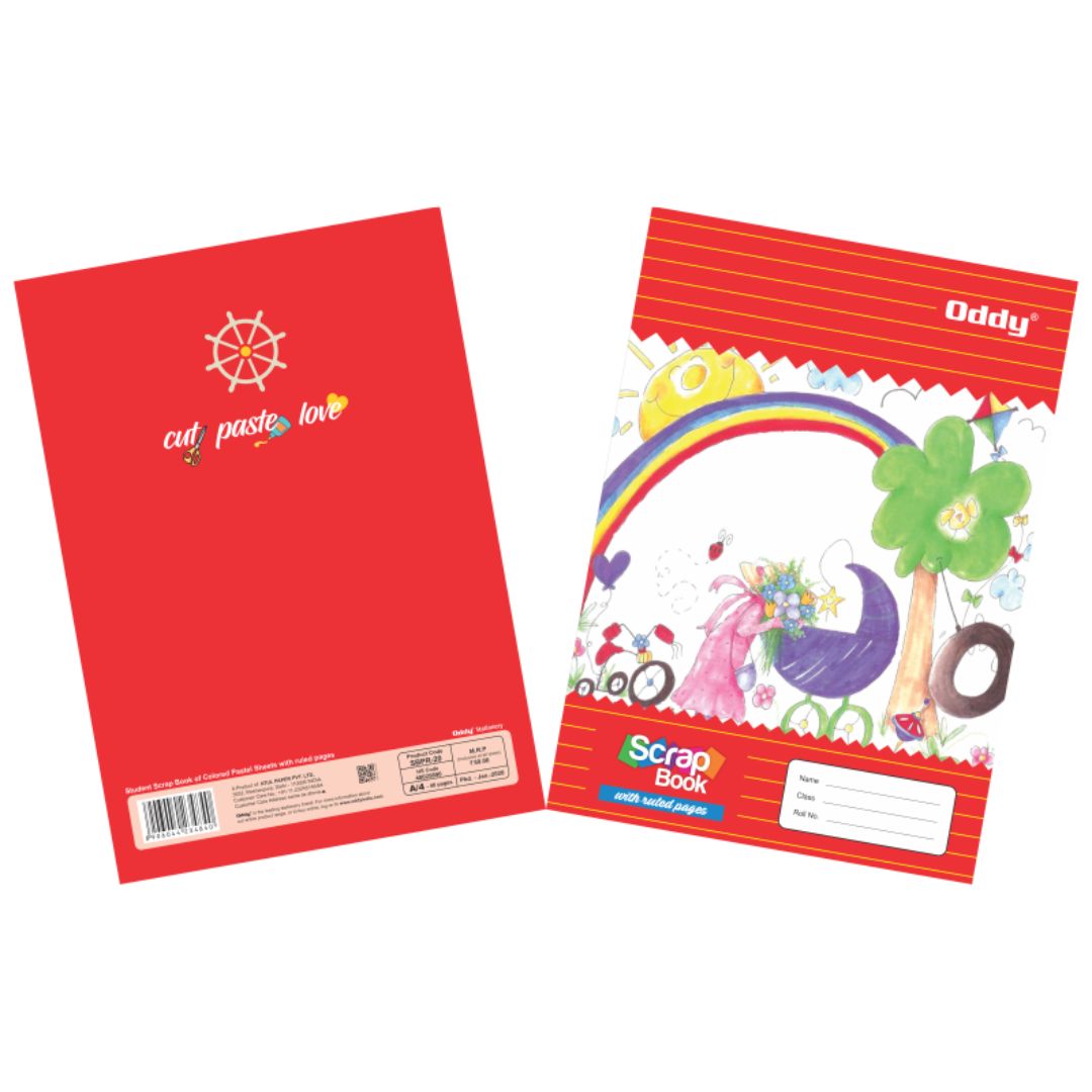 The Oddy Ruled Scrap Book blends creativity with structure, making it a great choice for school assignments that require both visual elements and written content. It features 5 vibrant colored pages, 10 ruled white sheets, and fine-quality paper. Compact and easy to carry, it’s tailored for art, craft, and organized project work.