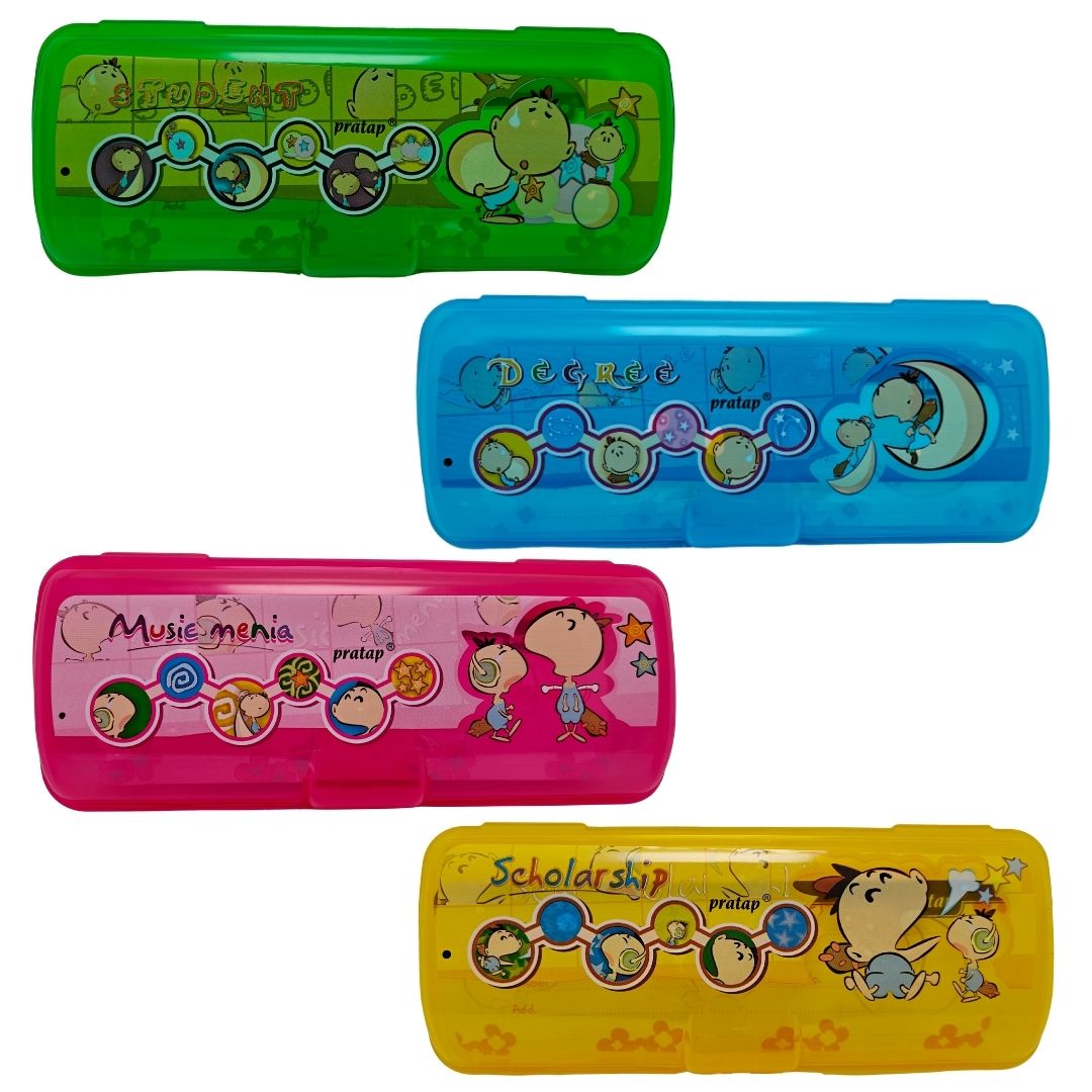 Equip your child with the Pratap Hy Trend Drawing Box, a stylish and really functional pencil case designed to store all essential school supplies. This cute pencil box for kids is perfect for keeping pens, pencils, and erasers secure and easy to find, making it a reliable companion for daily classroom activities.