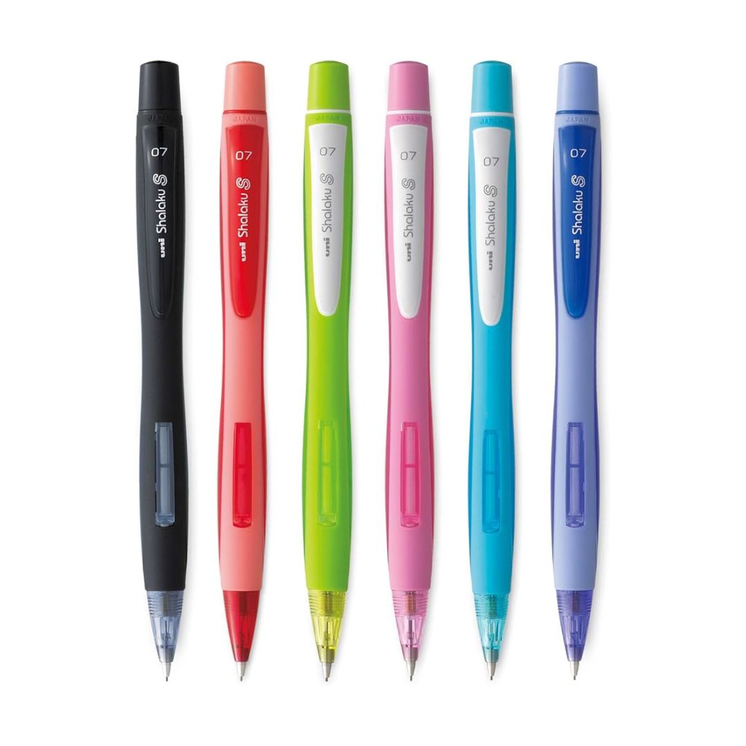 The Uni-ball Shalaku S 0.7 mm Mechanical Pencil features a rotating lead mechanism for break resistance and a sleek, durable design perfect for long writing tasks.