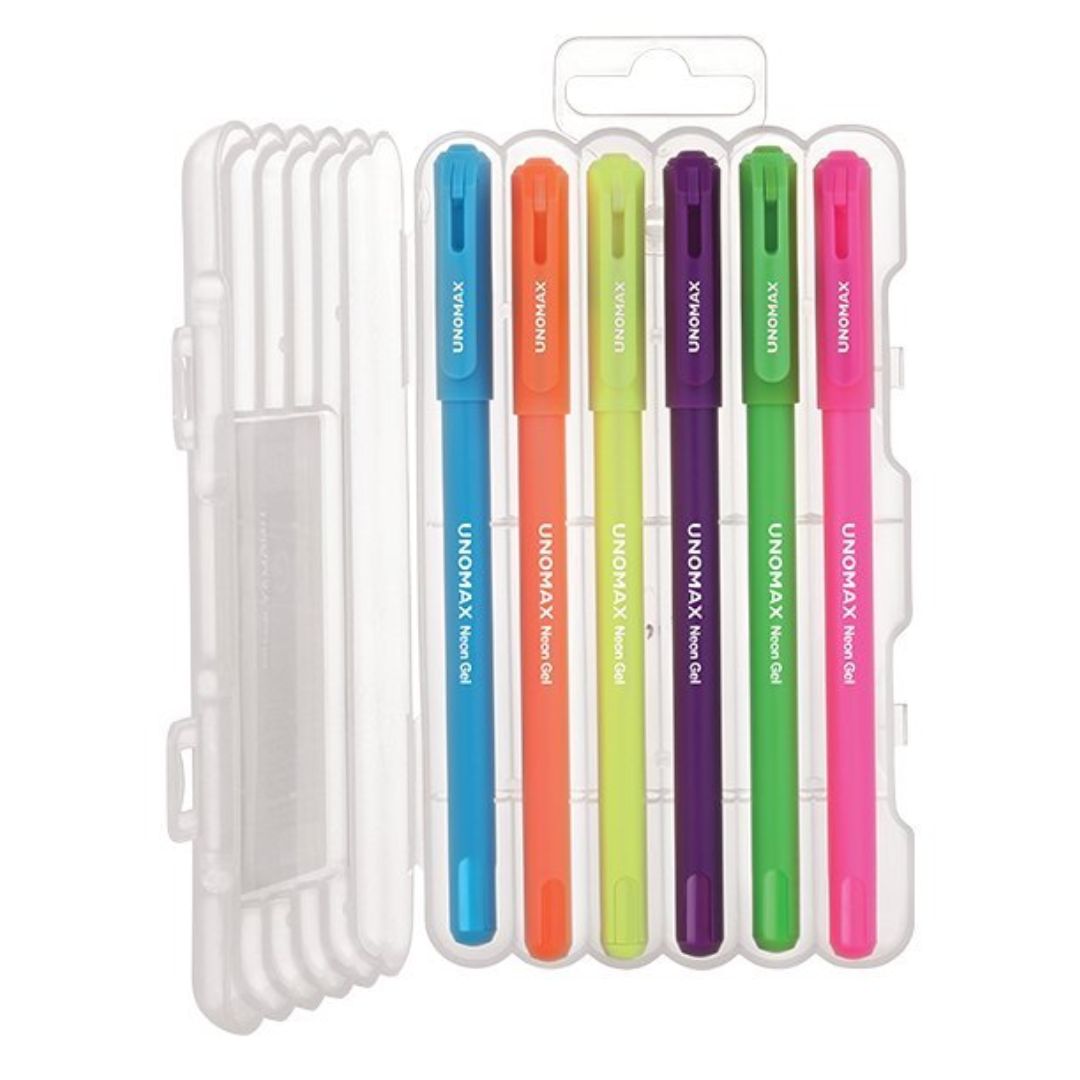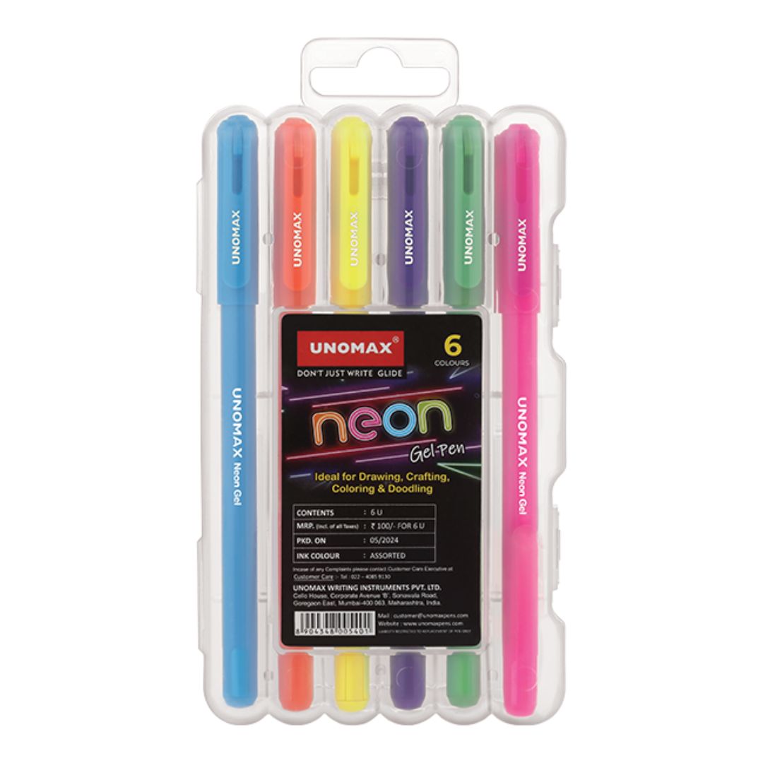 The Unomax Neon Gel Colour Pens (12 Shades) bring a splash of vibrant colour to your writing and artwork. Perfect for students, artists, and anyone who loves to add a touch of brightness to their work, these pens are designed with high-quality gel ink that glides effortlessly across the page. The neon colours are bold, rich, and eye-catching, making them perfect for highlighting, doodling, or crafting. With a 0.6mm fine tip, these pens provide precise lines and are ideal for detailed work such as journaling, sketching, or writing. Whether you are at school, in the office, or simply indulging in creative hobbies, the Unomax Neon Gel Colour Pens are an essential addition to your pen collection.